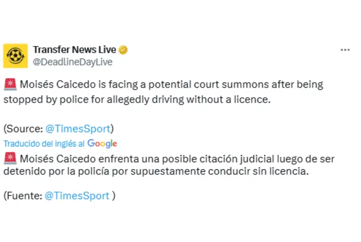 Según reportes del influyente diario británico The Sun, Caicedo habría sido detenido y su vehículo confiscado por conducir sin una licencia válida. Esta noticia ha sorprendido a propios y extraños, considerando el perfil bajo y la profesionalidad que siempre ha caracterizado al jugador de 23 años. Las autoridades locales ahora investigan si el seleccionado tricolor contaba con seguro vigente al momento de la infracción.