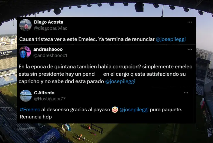Algunos de los comentarios que existieron fueron: "Sueño con el día que ese señor que dice ser presidente de Emelec se largue" o "Podrá venir Sampaoli o Guardiola, pero la plantilla de Emelec es para pelear nada, afuera Pileggi" y "Por favor presidente José Pileggi, dimita de la presidencia de Emelec, ya no le haga más daño al club", hasta le ruegan que ya se vaya.