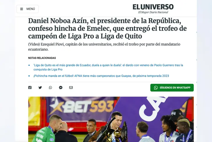 El equipo grande de Ecuador del que es hincha confeso el presidente Daniel Noboa