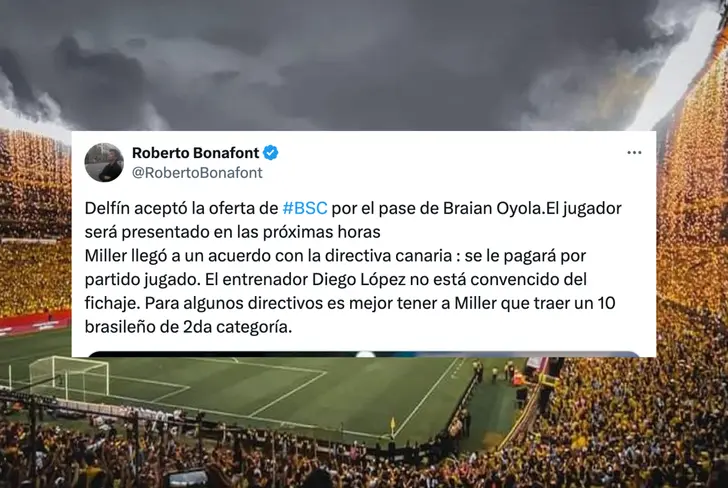 Parecía que el fichaje de Miller Bolaños a Barcelona Sporting Club no se daría, pero en las últimas horas el panorama cambiaría, ya que la directiva del equipo analizó la situación y lo habrían reconsiderado. Pero para que se de su llegada estaría atado a una condicionante determinante.