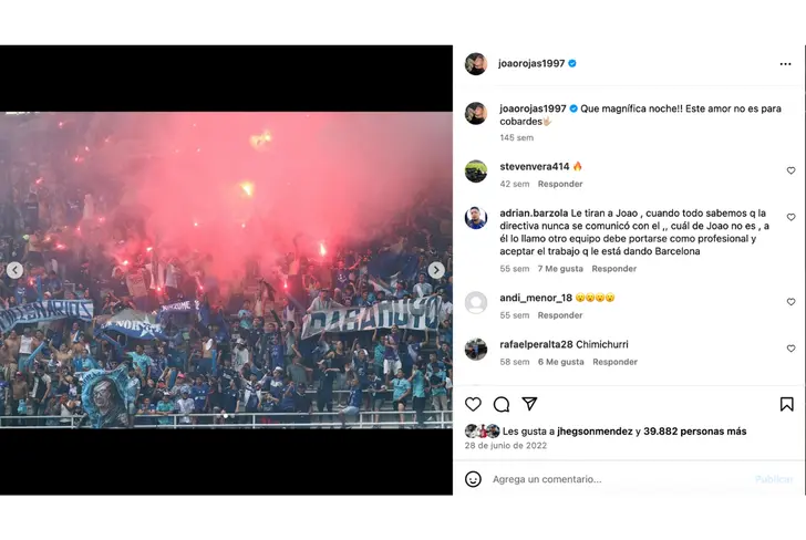 Joao Rojas está en proceso de recuperación en Barcelona SC y los hinchas no están del todo contentos porque le pagan un salario pero se ha operado, rehabilitado y está lejos de volver a las canchas. Ahora, para romper el corazón a los barcelonistas, en su cuenta de Instagram siguen las fotos de su paso por Emelec, donde llamaron la atención dos especialmente.