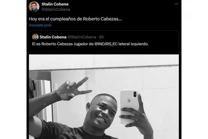 Roberto Cabezas, quien fue una de las víctimas mortales en el accidente que ocurrió en la Autopista General Rumiñahui, estaba de cumpleaños de acuerdo a información de Stalin Cobeña. Esto haría pensar que estaban por festejarle al elemento que era de los registros de Independiente Juniors.