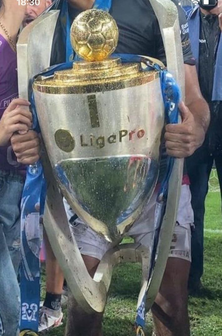 La copa de la Liga Pro al parecer se cayó y se notan los daños en la superficie, mira la foto