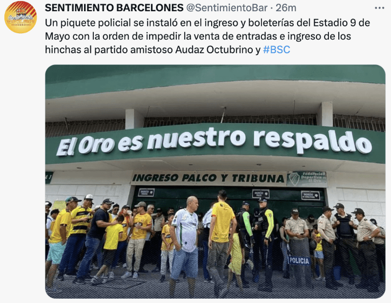 Los hinchas de Barcelona SC fueron tratados mal en el partido ante Audaz Octubrino