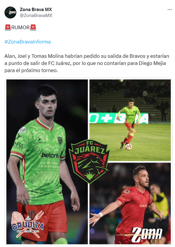 Tomás Molina tiene contrato con FC Juárez hasta diciembre de 2025, por lo que es muy probable que le estén buscando una cesión a préstamo, Liga de Quito podría aprovechar para traerlo por los seis meses que restan y solo negociar su sueldo.