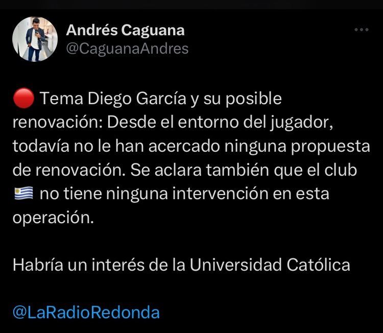 De acuerdo al periodista deportivo Andrés Caguana “Tema Diego García y su posible renovación: Desde el entorno del jugador, todavía no le han acercado ninguna propuesta de renovación. Se aclara también que el club no tiene ninguna intervención en esta operación. Habría un interés de la Universidad Católica.”
