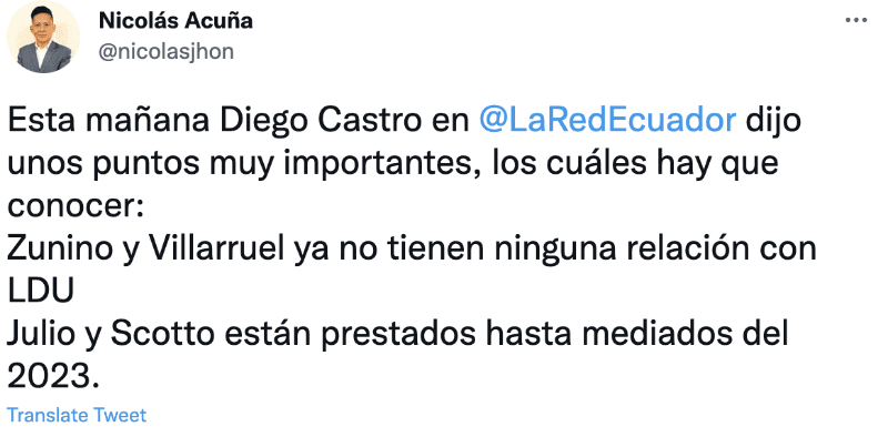 Liga de Quito hizo temporadas atrás el fichaje de Matías Zunino, quien no aportó mientras estuvo y tuvieron que prestarlo a Nacional de Uruguay, donde se suponía era uno de los grandes referentes, pero no ejercieron opción de compra. Ahora se irá del plantel albo, de acuerdo a información de Diego Castro, junto con Lucas Villarruel.