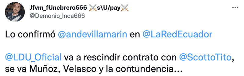En el caso de Santiago Scotto, que lo trajo Pablo Marini a Liga de Quito y lo firmaron hasta 2025, terminarán su contrato antes de tiempo lo que significa que deben pagar un valor en el club y de acuerdo a Transfermarkt sería medio millón de dólares.