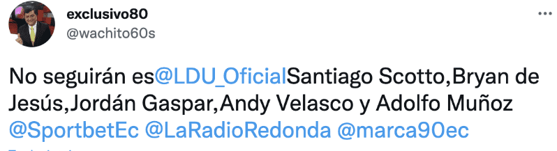 Liga de Quito tendrá cambios en su plantel para la siguiente etapa del Campeonato Ecuatoriano, entre ellos la salida de Adolfo Muñoz a quien, de acuerdo a diversas fuentes, fue notificado que no seguirá en el plantel.