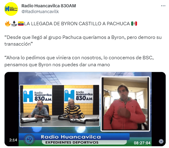 En una entrevista con Radio Huancavilca, Guillermo Almada habló sobre la posibilidad de que Byron Castillo llegue a Pachuca: “Desde que llegó al grupo Pachuca queríamos a Byron, pero demoró su transacción. Ahora lo pedimos que viniera con nosotros, lo conocemos de Barcelona SC, pensamos que nos puedes dar una mano".