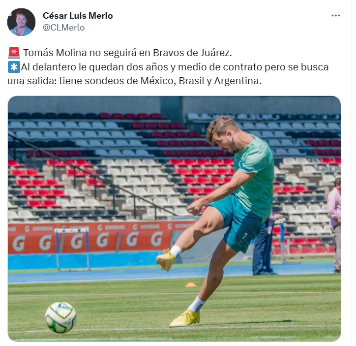Desde México reportan que Tomás Molina no continuará en FC Juárez, por lo que le darán vía libre para negociar con cualquier equipo. Tiene ofertas de Brasil y Argentina, pero si el jugador desea relanzar su carrera y Liga de Quito le hace una oferta es probable que la considere.