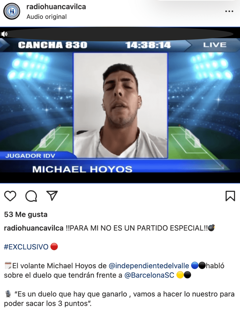 En entrevista con Radio Huancavilca, Michael Hoyos dijo que ante Barcelona SC es un partido más, nada especial, haciendo de menos la relevancia que tiene el Ídolo al momento de saltar a la cancha, por toda la hinchada que mete y la presión que debería sentirse de jugar contra el que es considerado uno de los grandes del país.