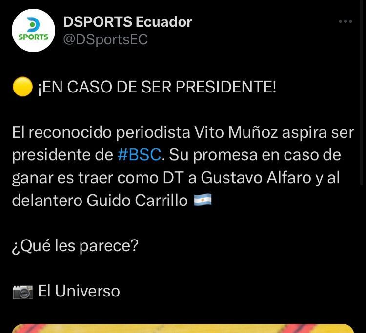 El periodista Vito Muñoz es un hincha confeso de Barcelona, durante una entrevista brindada a El Universo manifestó: “El reconocido periodista Vito Muñoz aspira ser presidente de Barcelona SC. Su promesa en caso de ganar es traer como DT a Gustavo Alfaro y al delantero Guido Carrillo” así lo publicó la cuenta de D Sports