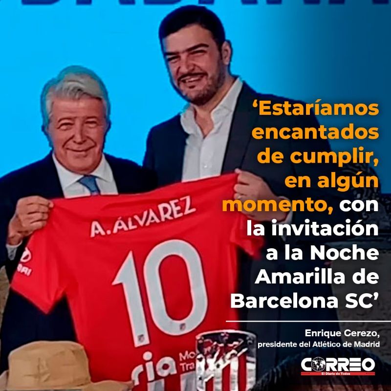 El alcalde de Guayaquil, Aquiles Álvarez, mencionó que hará las gestiones correspondientes para que Atlético de Madrid pueda ser invitado a la Noche Amarilla del próximo año y sean los invitados especiales.