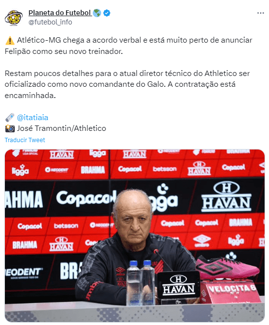 América Mineiro está atravesando un pésimo momento en el Brasileirao, ya que se ubica en la posición 18, está en zona de descenso y solo ganó 2 veces tras 10 fechas. Para revertir esta situación, contratarán al histórico Luiz Felipe Escolari.