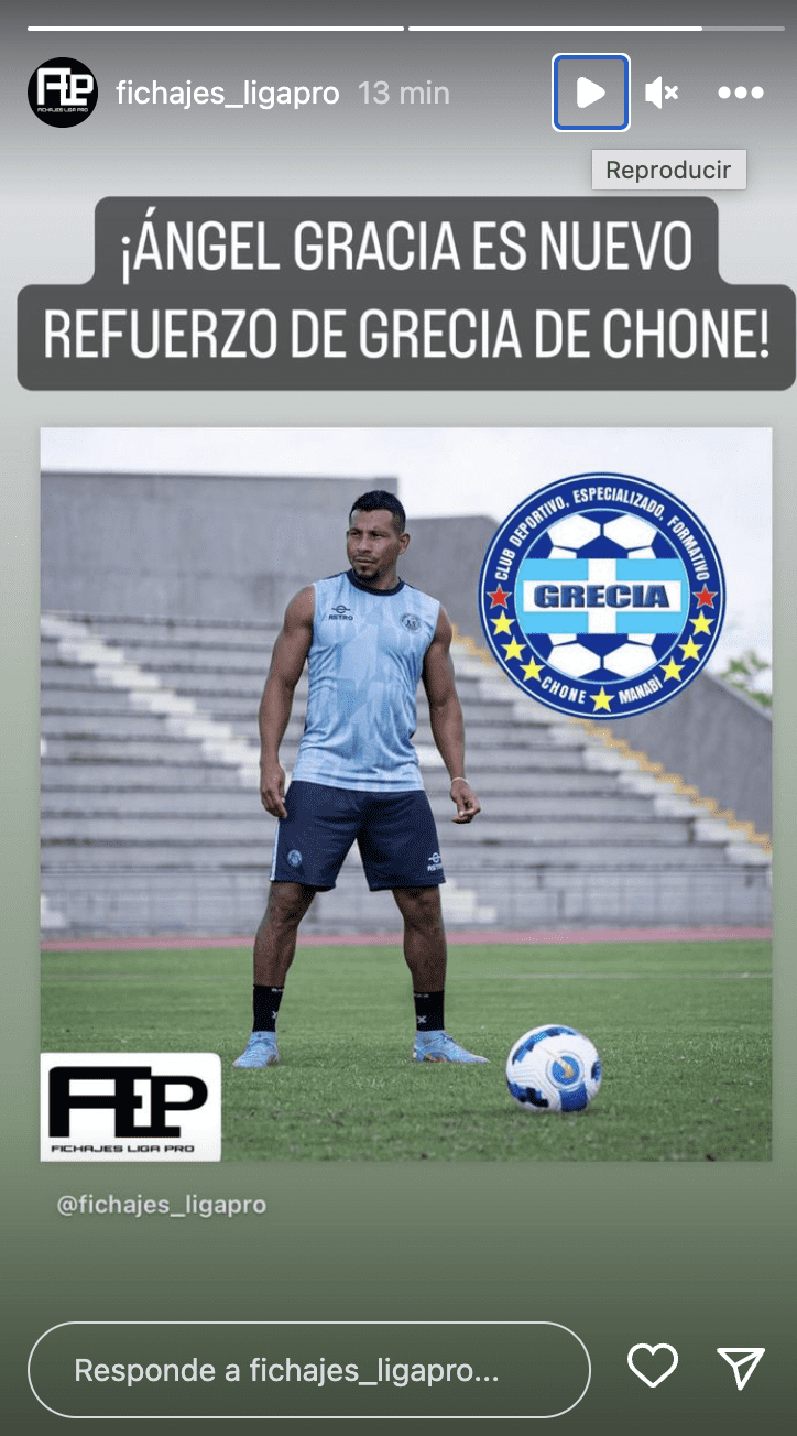 De acuerdo a información del portal Fichajes LigaPro, Ángel Gracia tiene nuevo equipo para esta temporada y se trata de Grecia de Chone quien disputará la Segunda Categoría, luego que también disputó la Serie B y tuvo a uno de los elementos más representativos en el fútbol ecuatoriano, como es Iván Hurtado.