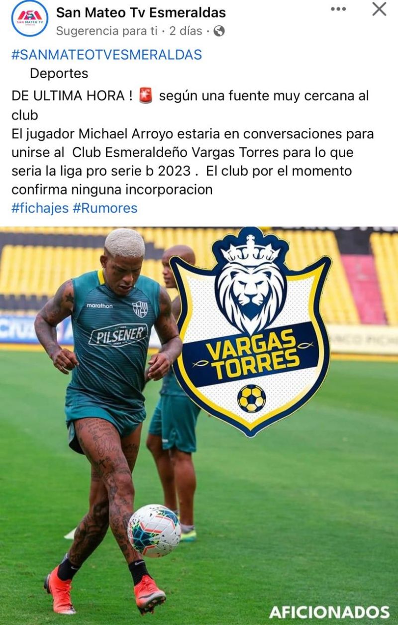 A raíz de esto, la carrera de Arroyo prácticamente terminó, sin embargo, hoy tiene la posibilidad de salir del retiro y volver al fútbol profesional. El equipo esmeraldeño Vargas Torres, que recién ascendió a la Serie B del fútbol ecuatoriano, tiene en mente contratar a Michael Arroyo.