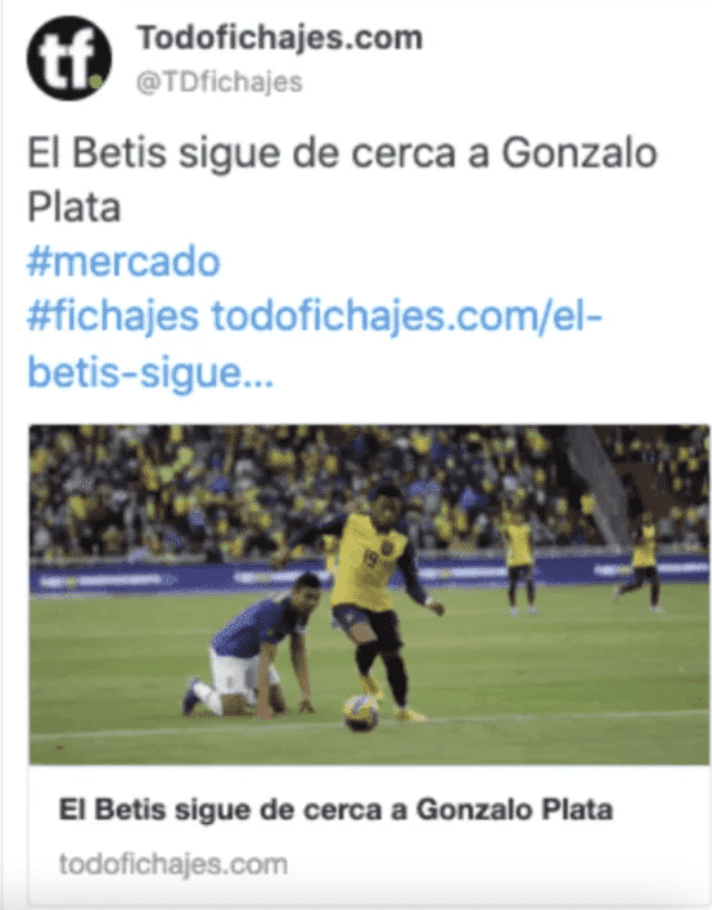 Según informó el portal Estadio Deportivo, Real Betis está tras los pasos de Dani Cevallos quien es del Real Madrid y lo han declarado transferible. El costo de su pase es de 20 millones de euros, de acuerdo a Transfermarkt, y es su prioridad.