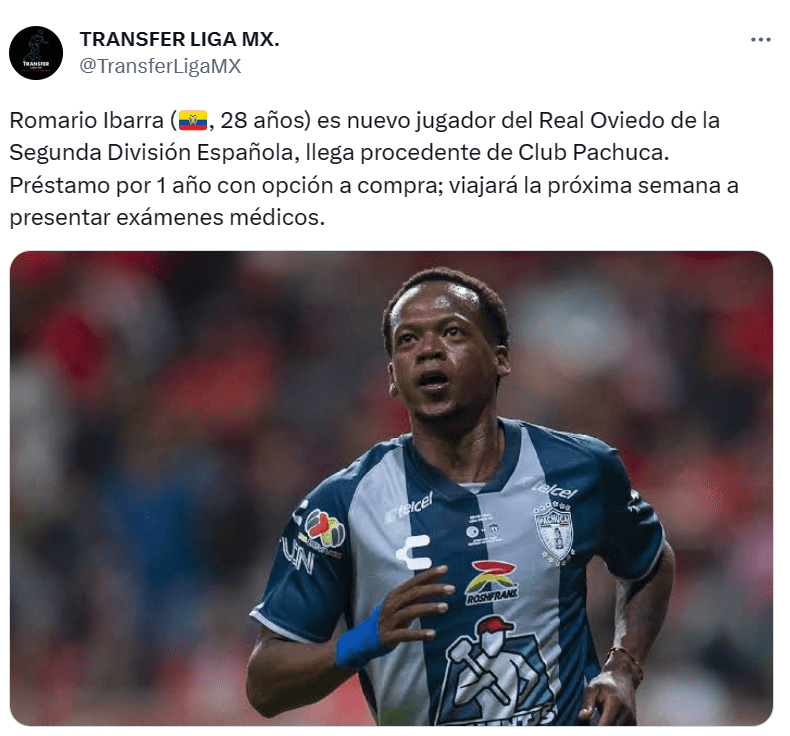 Según información de medios mexicanos, Romario Ibarra es nuevo jugador del Real Oviedo de la segunda división de España. Este era un fichaje que se venía cocinando hace varias semanas y que ahora prácticamente es oficial, por lo que habrá otro ecuatoriano en una de las ligas más importantes del mundo.