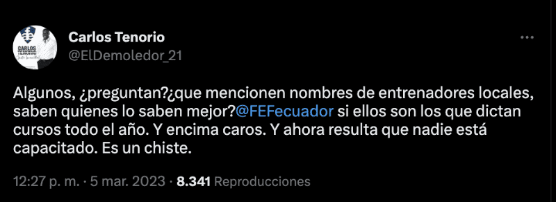 Según Carlos Tenorio, la FEF imparte cursos caros para entrenador, pero nunca sale de estos cursos un técnico de calidad: “Algunos, ¿preguntan? ¿Que mencionen nombres de entrenadores locales, saben quiénes lo saben mejor? La FEF si ellos son los que dictan cursos todo el año. Y encima caros. Y ahora resulta que nadie está capacitado. Es un chiste.”
