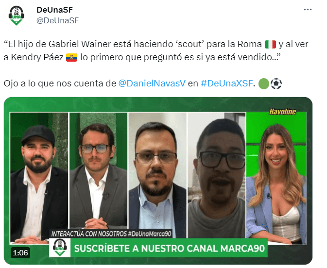 En el programa De Una, revelaron que el hijo de Gabriel Wainer, exdirector deportivo de la FEF, ahora trabaja como ojeador para la Roma de Italia, estuvo atento al desempeño de Kendry Páez y preguntó si es que ya está vendido.