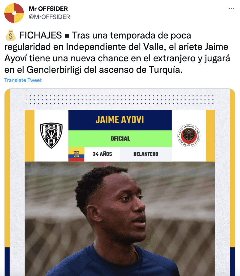 Jaime Ayoví, que estuvo a punto de ponerse nuevamente la camiseta de Emelec para el 2023, no llegaron a un acuerdo además que contrataron a Bryan Angulo y tienen a Alejandro Cabeza. La Yoya, de acuerdo a información de Mr OFFSIDER, se irá para el ascenso de Turquía, específicamente Genclerbirligi.